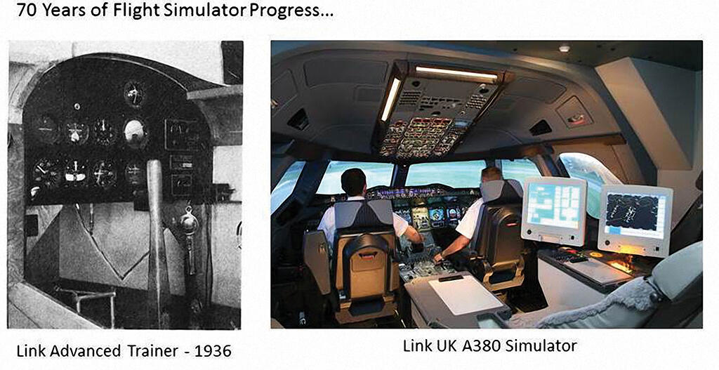 The September 1936 issue of Aviation helps reveal the vast changes that have taken place in flight simulation fidelity over 70 years. An article extols the virtues of the new Link Advanced Trainer, which “not only reproduces all conditions of instrument flying, but embodies an automatic course recorder” that plots out the student’s course in pen and ink, “even including slight turns and minute errors in compass headings.” Known as the “Blue Box,” the Link simulator was first built in 1929 to teach instrument flying skills.