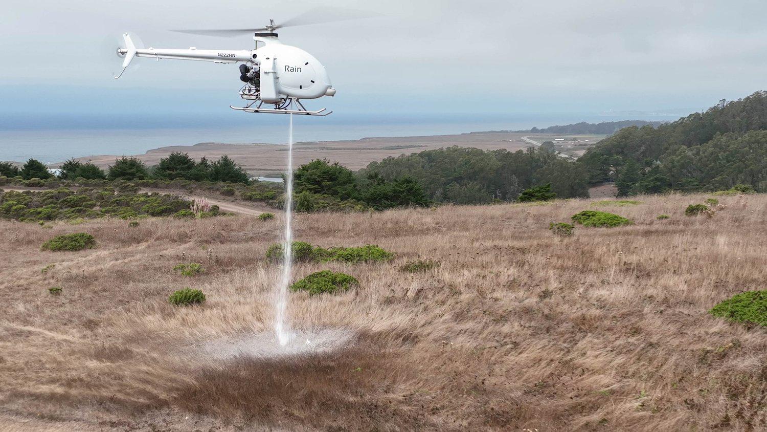 Rain says its aircraft use thermal cameras, computer vision and its own software to precisely drop fire retardant.