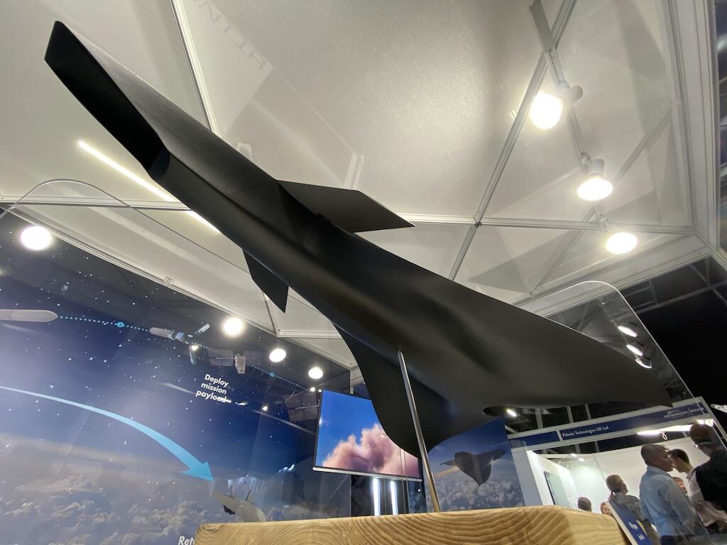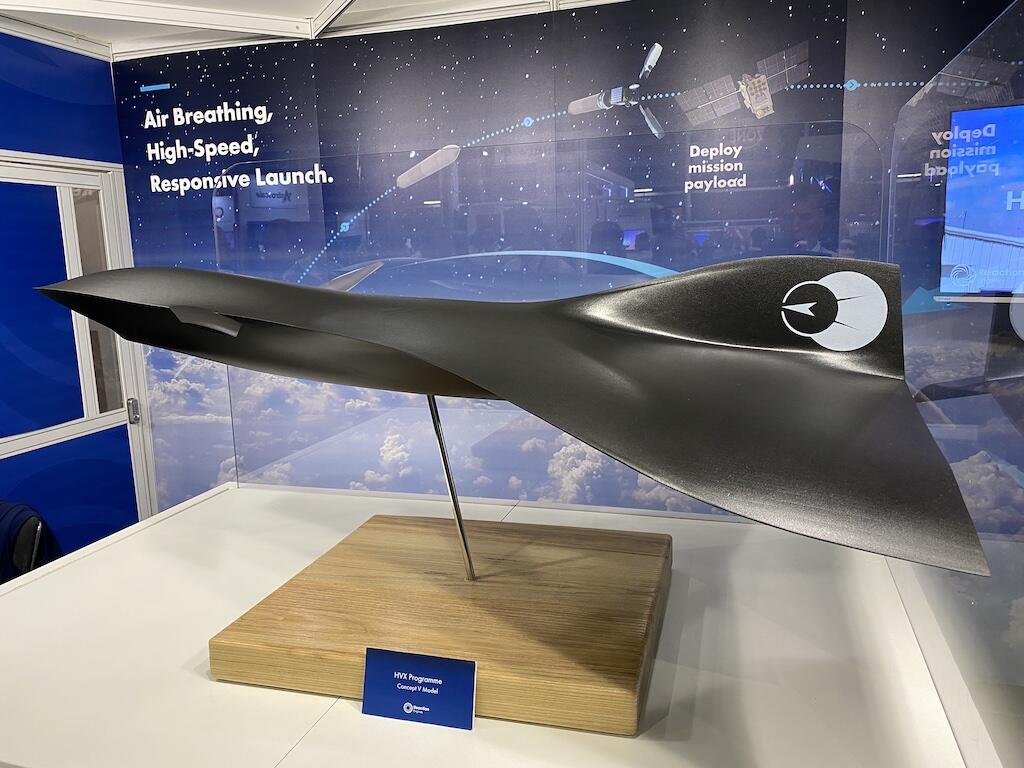 The concept model revealed at Farnborough is reminiscent of the D-21 drone carried by the Lockheed SR-71 Blackbird and represents Reaction's first step towards hypersonic flight and a potential new UK defense capability.