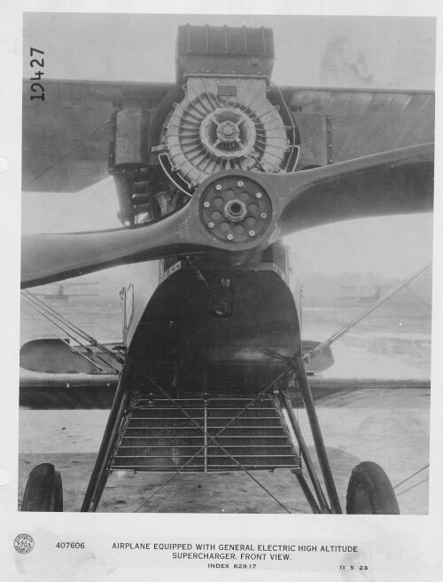 Researchers toward the end of World War I discovered that the power of a piston engine at sea level could be significantly boosted by pre-compressing air before it was ingested into the engine, usually by a centrifugal compressor. The system also compensated for the effect of decreasing air density with altitude, thereby preventing power levels from declining as the aircraft climbed. An early Liberty engine is shown fitted with a basic turbosupercharger, similar to the one tested in 1918 by a General Electric team led by Sanford Moss.