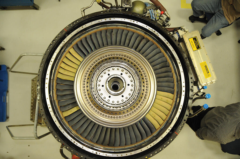 General Electric has successfully validated the temperature capabilities and durability of low-pressure turbine blades made from lightweight ceramic matrix composites (CMC) in an F414 turbofan (seen in yellow), opening the door toward greater use of the advanced material in future combat engines for sixth-generation fighter aircraft and other applications.