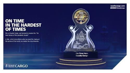 Saudia Cargo won the On-Time Hero Award at the Heroes of the Pandemic Awards 2021 for its on-time performance in delivering cargo in Saudi Arabia and its global markets.