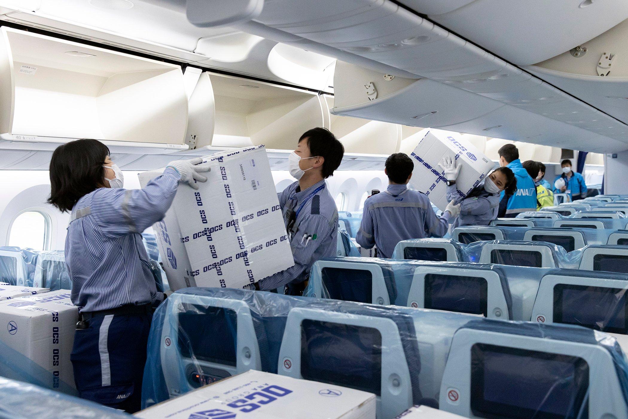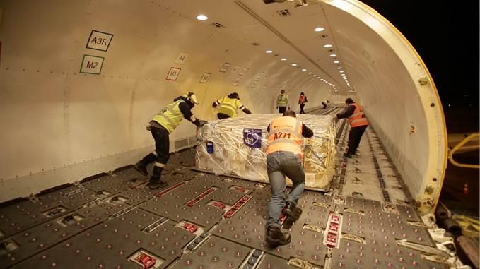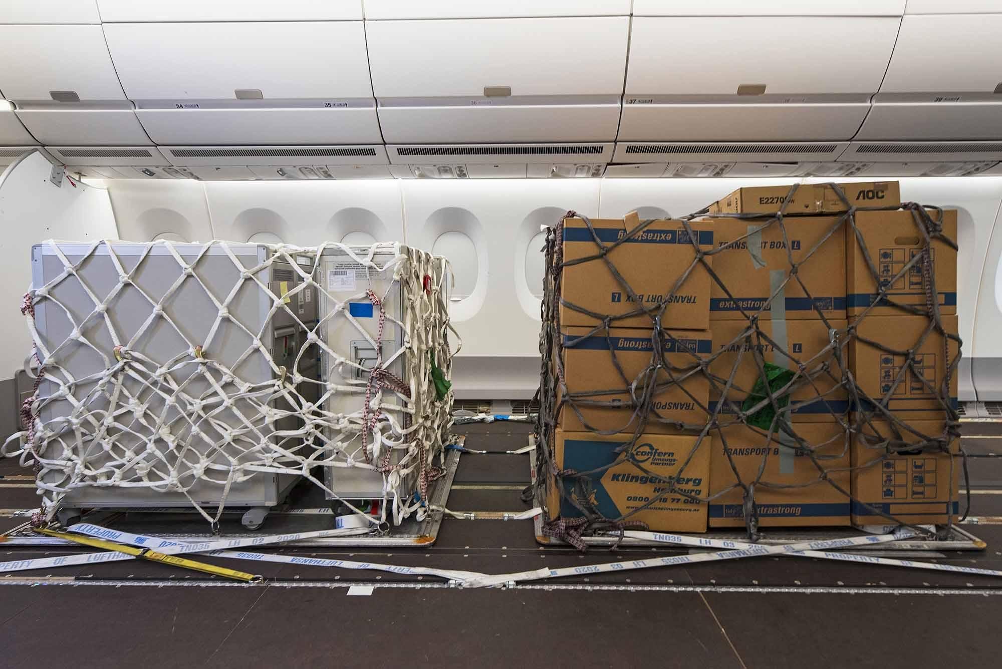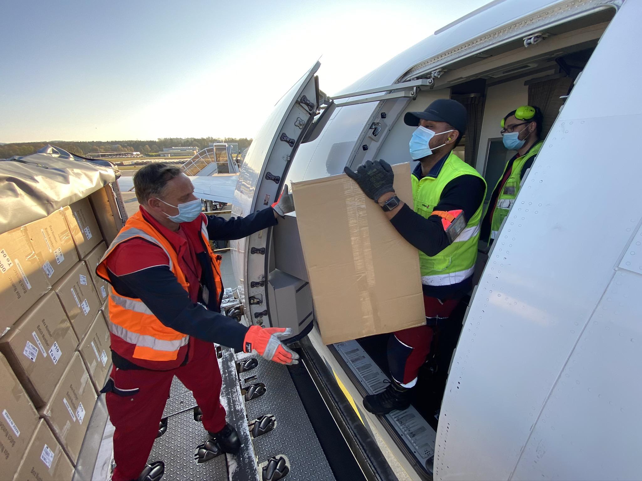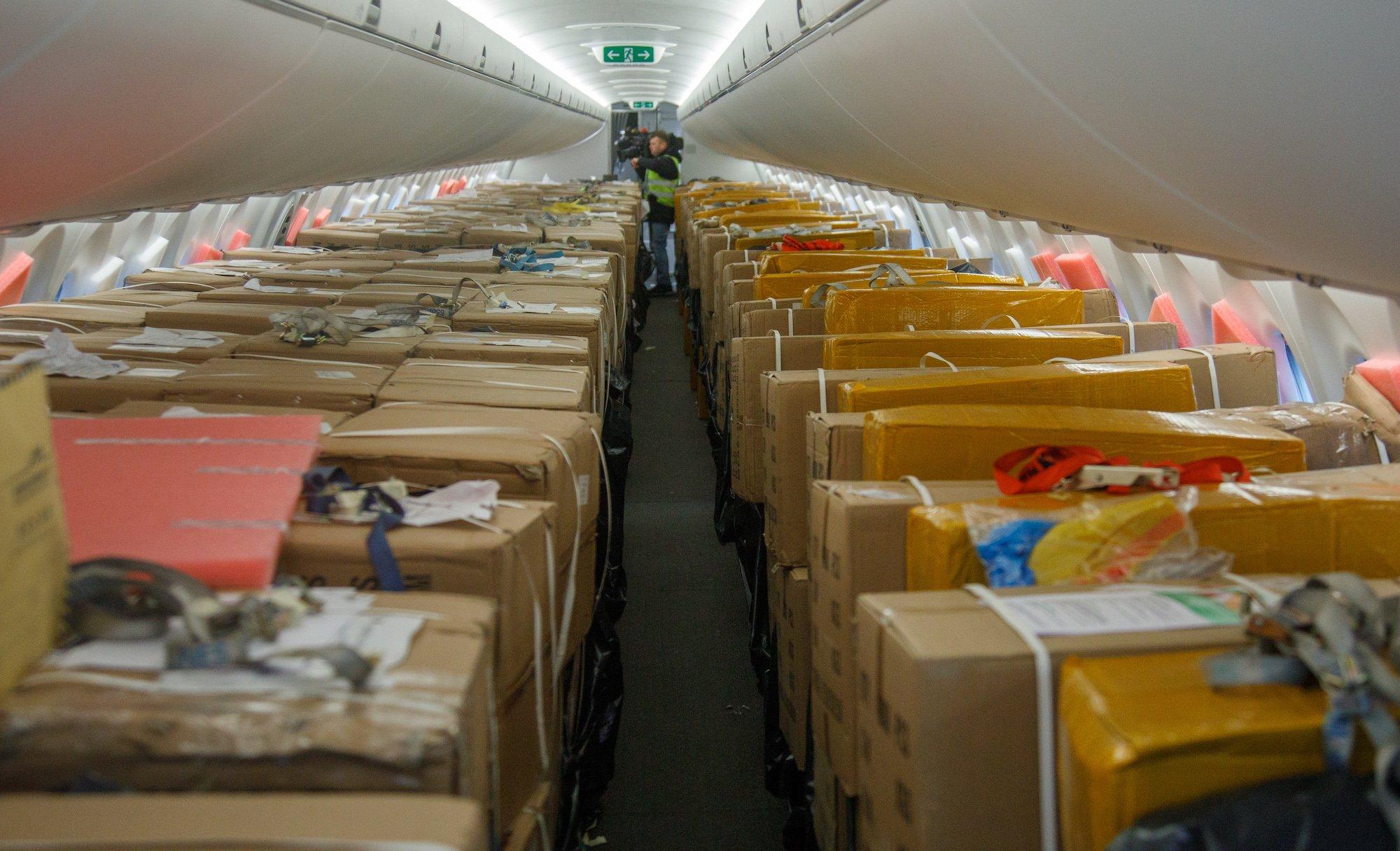 Overall, 619 boxes, 5.1 tonnes or 47 cubic meters of approximately 900,000 face masks and 80,000 respirators were carried. Three pilots and two technicians were on board the aircraft to perform the flight.
