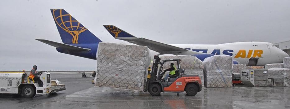 On March 29, Atlas Air operated the first flight for Project Airbridge from Shanghai, China into New York JFK. The flight carried 130,000 N-95 masks; nearly 1.8 million surgical masks and gowns; more than 10.3 million gloves; and more than 70,000 thermometers. The supplies will be distributed primarily to New York, New Jersey, and Connecticut hospitals, with the remainder designated for nursing homes in the area, as well as other high-risk areas across the country.
