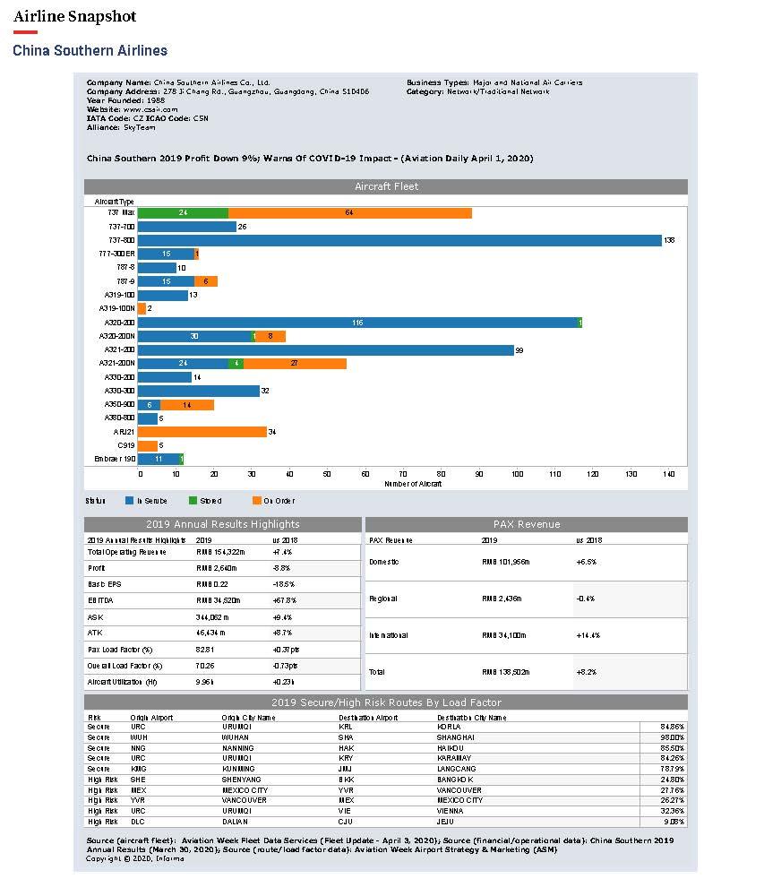 Airline Snapshot: China Southern Airlines is published in Aviation Daily, an Aviation Week Intelligence Network (AWIN) Market Briefing and is included with your AWIN membership.