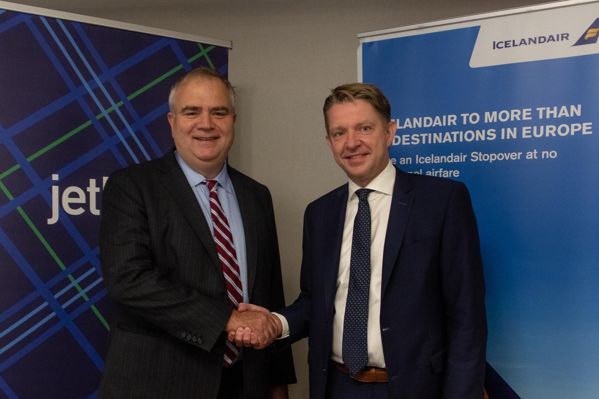 Photo caption: (L-R) JetBlue CEO Robin Hayes and Icelandair CEO Bogi Nils Bogason.