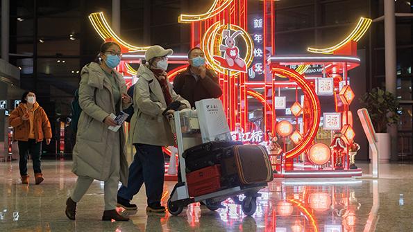 Travelers make their way through Shanghai Hongqiao International Airport ahead of the Chinese Lunar New Year holiday in January.