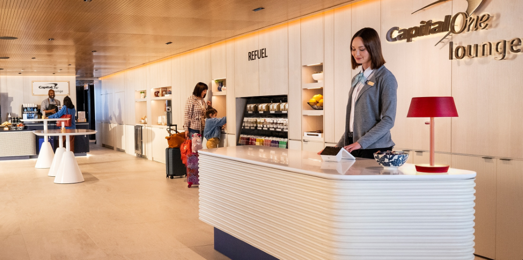 Capital One opened a lounge at Washington Dulles International Airport (IAD) on Sept. 7, 2023, that features unique, locally inspired, premium amenities and is designed to accommodate all types of travelers, from those looking for a quick drink or bite before they board their flights to those who are looking for a place to relax and recharge before their travel journey.