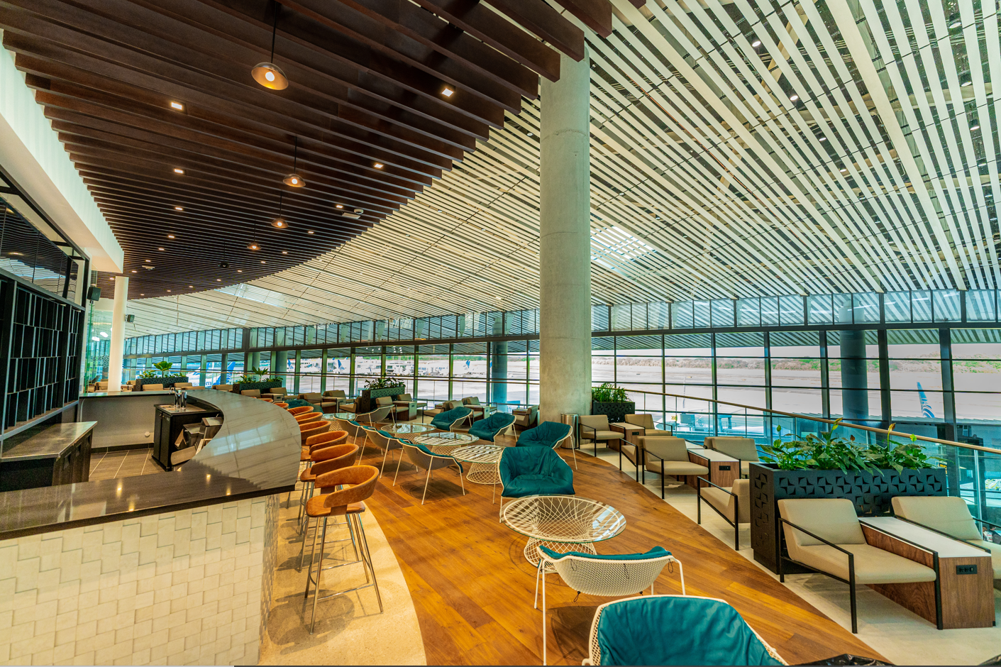Airport Dimensions partnered with VIP lounge operator Ambaar Lounge to open the first Ambaar Club lounge at Viracopos International Airport (pictured) in early December 2021, marking Airport Dimensions’ debut in the South American market. Located airside in the domestic departures hall, Ambaar Club VIP has a capacity for more than 100 passengers. The design draws from the culture and heritage of the surrounding Campinas region, featuring two significant agricultural crops—sugar cane and coffee. The design scheme is softened by fresh greenery.