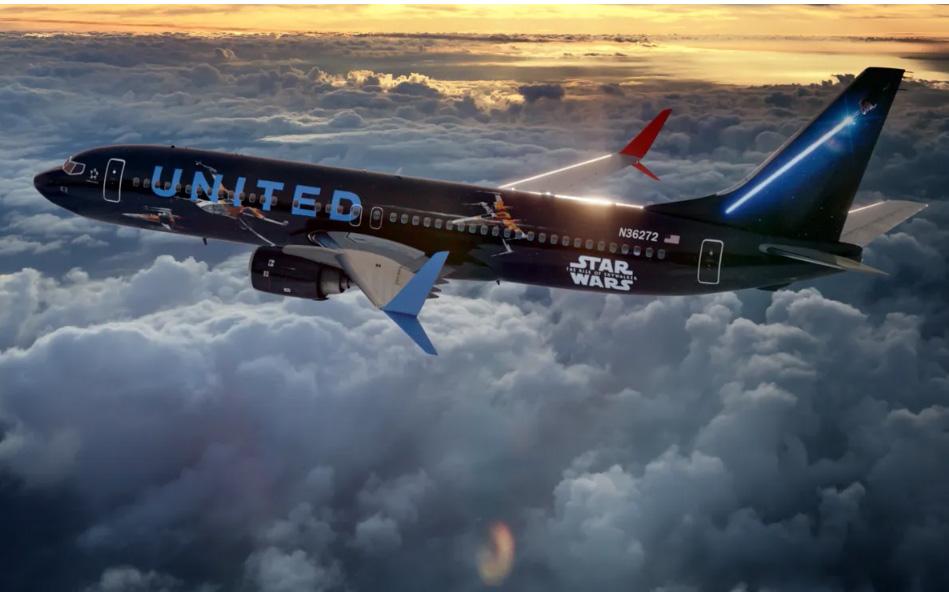 United Airlines unveiled a Star Wars-themed paint design on a Boeing 737-800 in November 2019 to celebrate the epic conclusion of the Skywalker saga, Star Wars: The Rise of Skywalker.