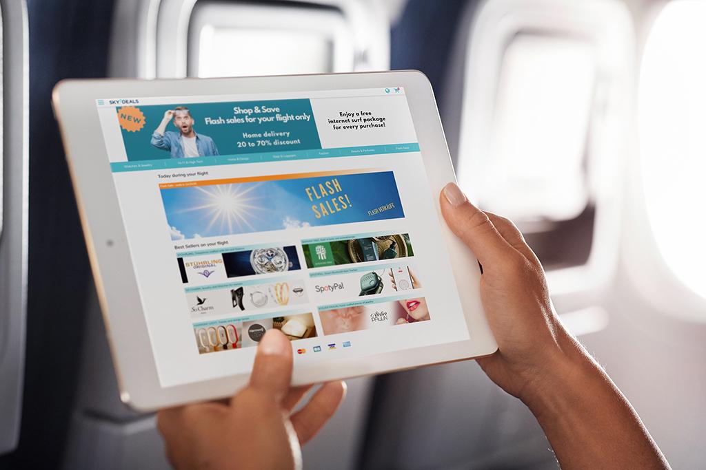 Lufthansa and Austrian Airlines are testing a new inflight shopping experience for passengers—via Internet on board (FlyNet). Guests will have free access to the SKYdeals shopping platform via the FlyNet portal with their mobile device during their flight within Germany and Europe. The platform is the first online marketplace on board for so-called “shoppertainment.” After passengers input their destination and flight route in the online marketplace, the SKYdeals Inflight Shopping platform offers a selection of products, each of which is related to the destination or the flight route. After online ordering and payment on board via the SKYdeals platform, customers can have the order delivered by post to their desired address.