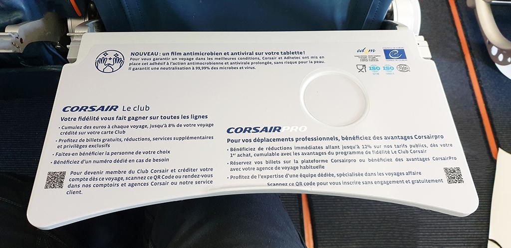 French leisure carrier Corsair signed a partnership with Adhetec, a specialist in high quality technical adhesive solutions, to test a new antimicrobial film on its tray tables. All the tray tables of the business, premium and economy class seats are equipped with a protective aeronautical film developed by Adhetec, which uses the natural and antimicrobial technology of its partner Pylote, a specialist in mineral and ceramic industrial chemistry. The whole Corsair fleet will progressively be equipped with the antimicrobial film.