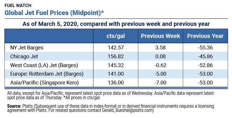 Global Jet Fuel Prices As Of March 5, 2020