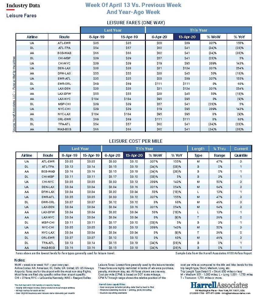 Leisure and Discounted Business Fares: Week of April 13