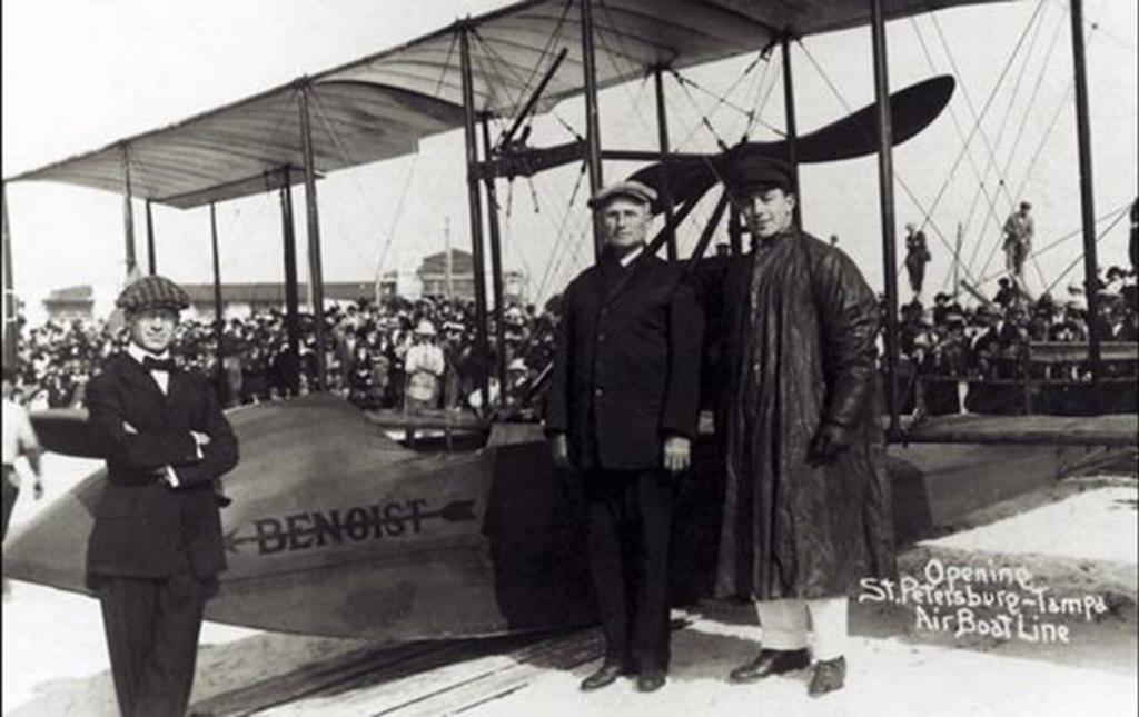 1914. First fixed-wing scheduled passenger flight from St. Petersburg to Tampa, Florida.