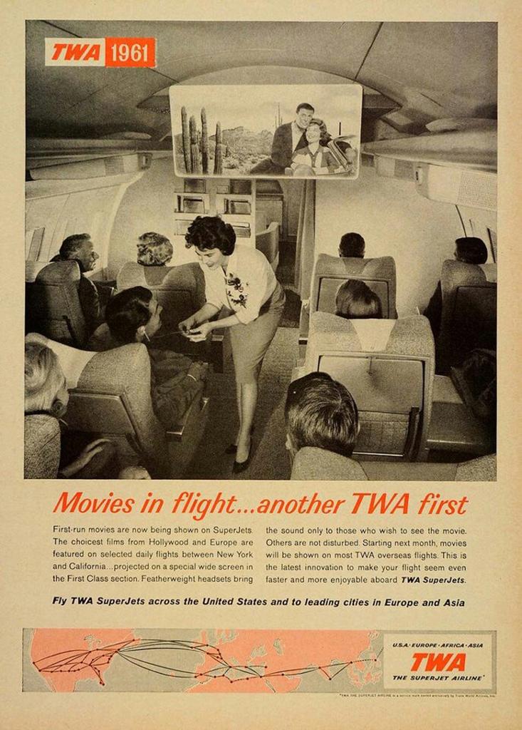 1961. First in-flight movie introduced by TWA.