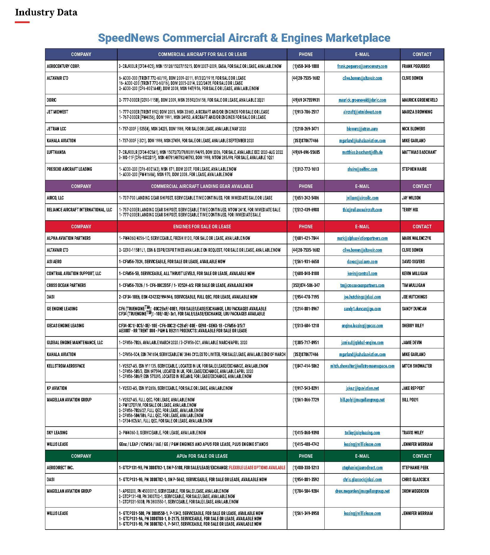 SpeedNews Commercial Aircraft & Engine Marketplace