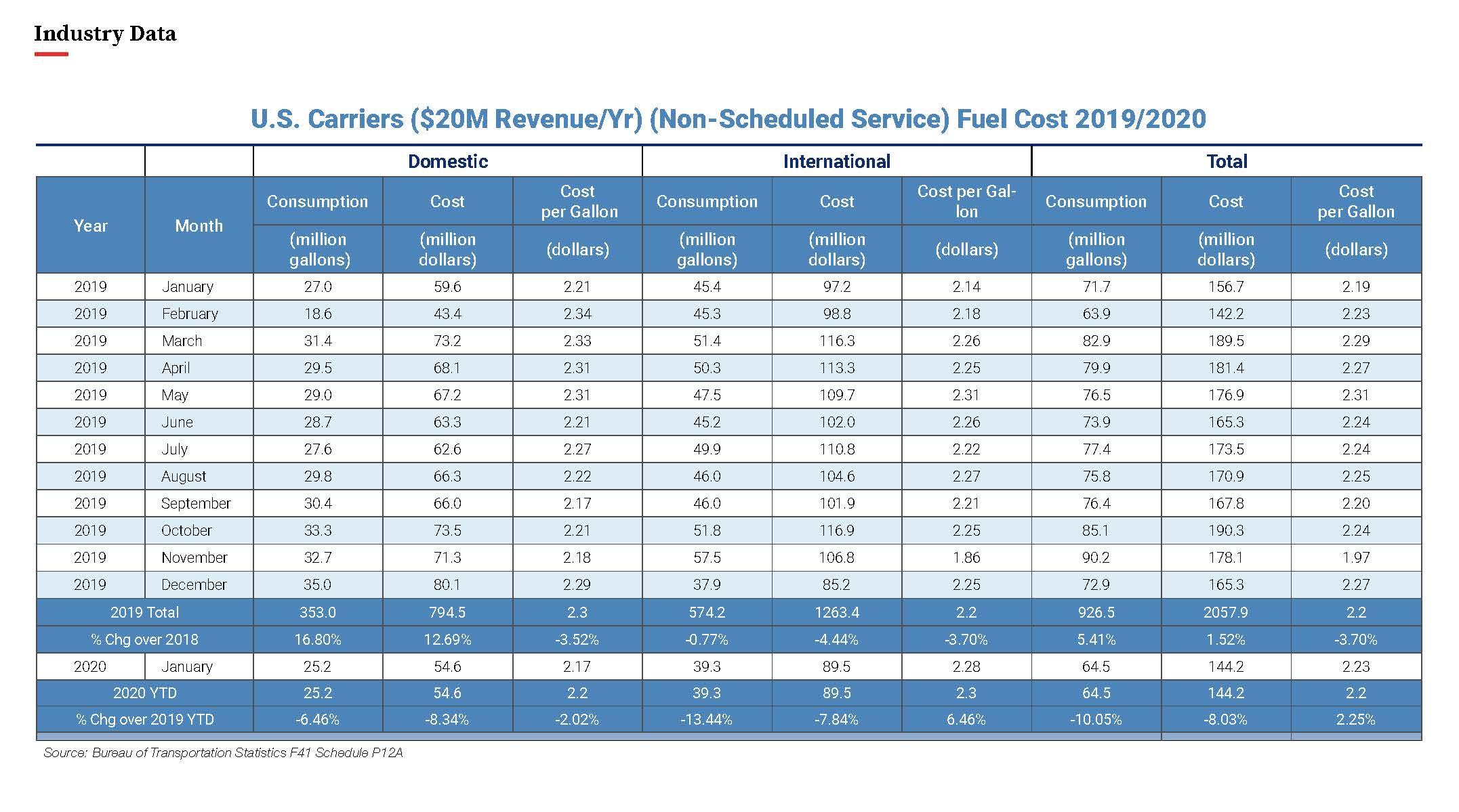 U.S. Carriers ($20M Revenue/Yr) (Non-Scheduled Service) Fuel Cost 2019/2020