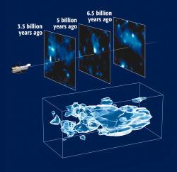 Astronomers have more work to do, but a new map of "dark matter" dating halfway back to the Big Bang lends weight to the theory that the mysterious phenomenon holds the visible Universe like lights on a Christmas tree. The researchers have produced a three-dimensional map of a slice of the sky nine...