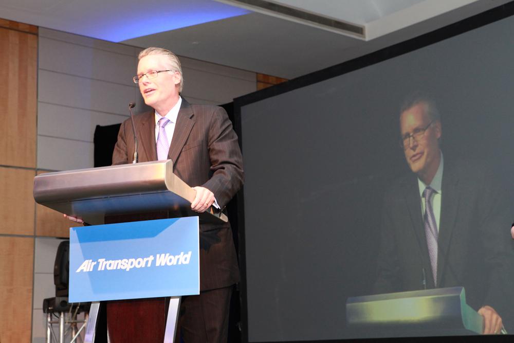 Etihad Airways CEO James Hogan accepts ATW's Airline Market Leadership award.