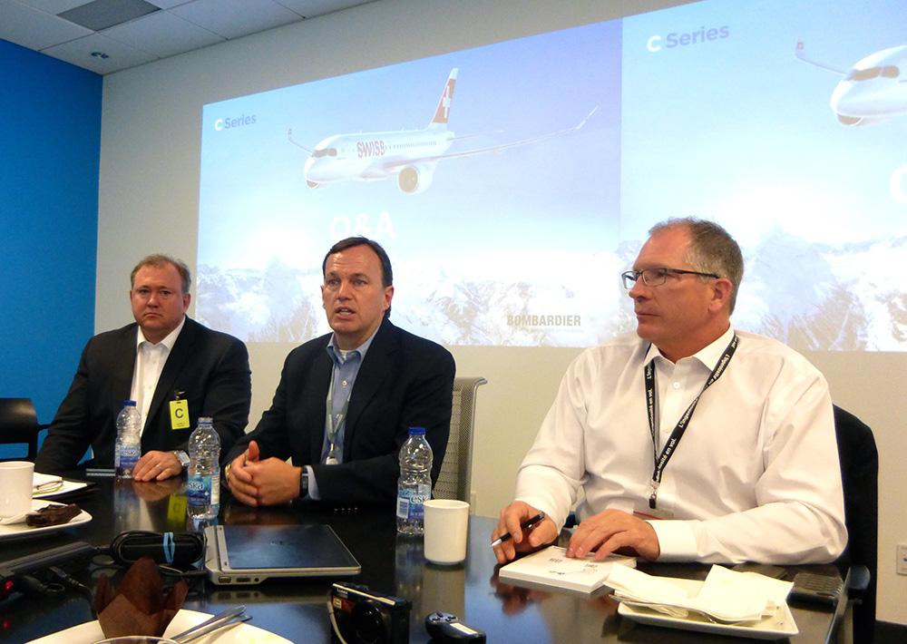 From left: Pratt & Whitney VP-commercial engines Graham Webb, Bombardier Commercial Aircraft president Fred Cromer and Bombardier VP-CSeries program Rob Dewar.