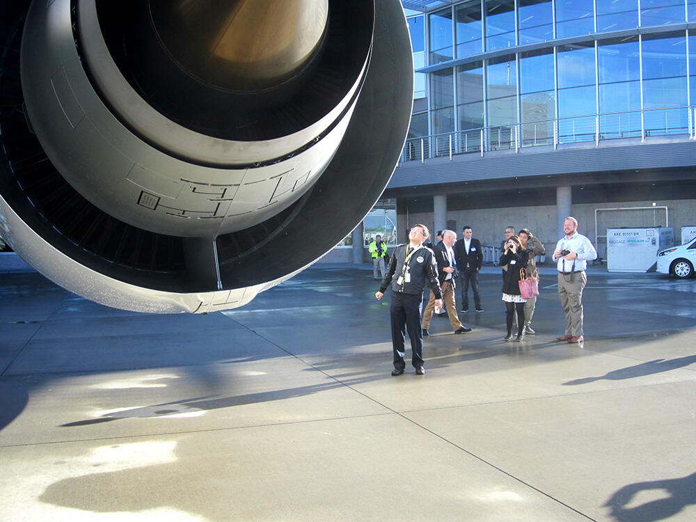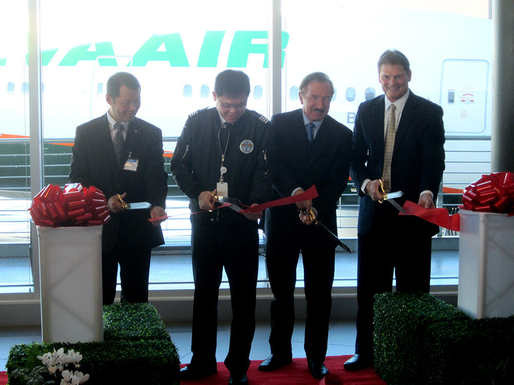 Taiwan-based EVA Air has taken delivery of its first re-branded Boeing 777-300ER at the US manufacturer’s delivery center in Everett, Washington Nov. 10-11. While being the 22nd 777-300ER in EVA’s fleet, the new aircraft debuts EVA’s new livery design and corporate identity. The aircraft’s simplified tail design features a compass as its focal point, borrowed from EVA’s corporate parent Evergreen Group; the aircraft’s underbelly is now a dark-green with a curved orange borderline. Photos by Mark Nensel