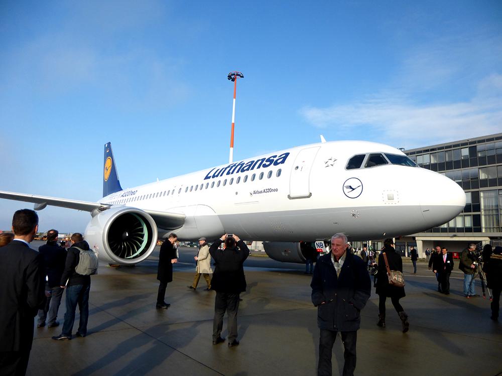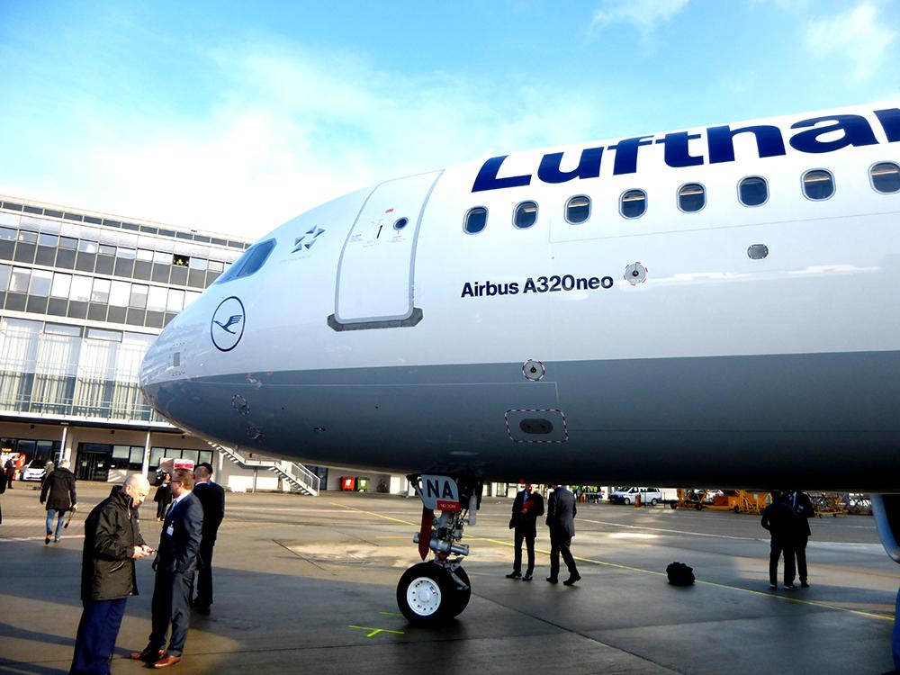 The Lufthansa A320neo at Frankfurt airport.