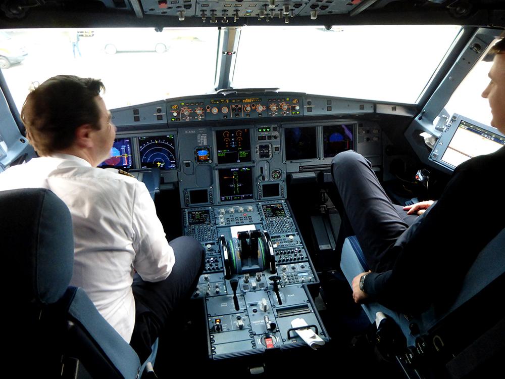 The Lufthansa A320neo cockpit.