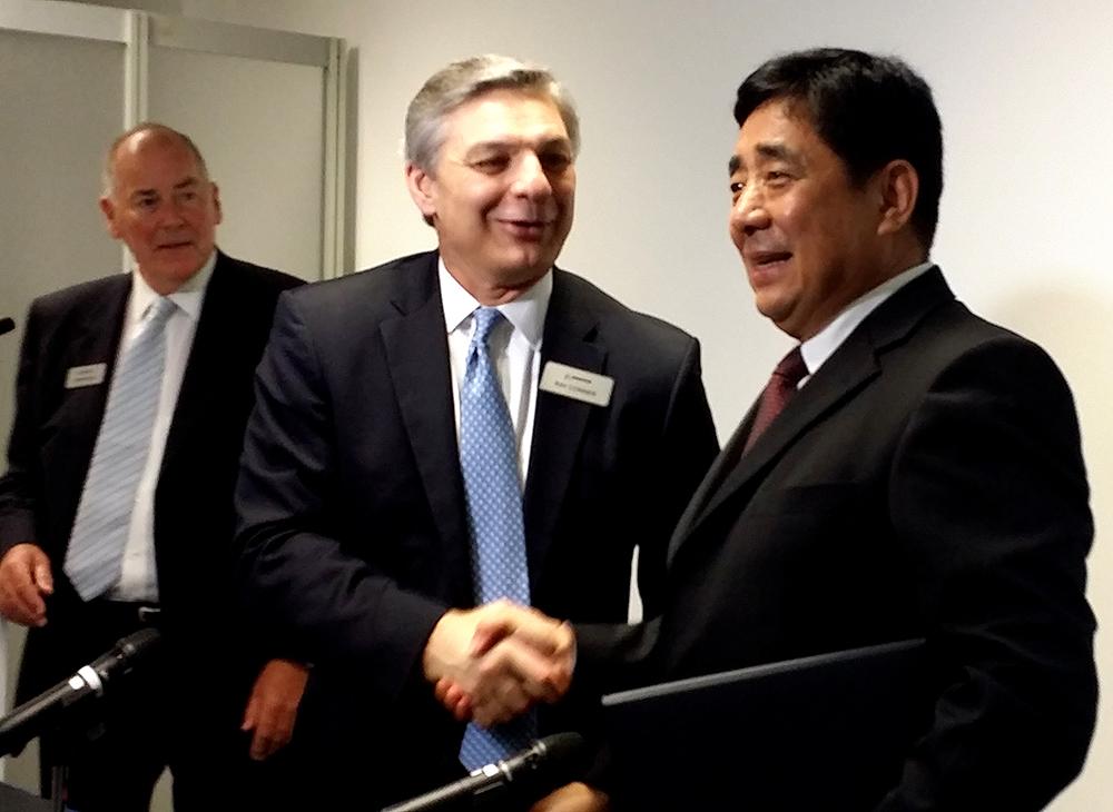 Beijing-headquartered Okay Airways is set to become the Chinese launch customer for the Boeing 737 MAX 9, after committing to take 12 737 family aircraft and eight options, valued at $1.3 billion at list prices. Photo taken at the Singapore Airshow: Left (out of main shot): Boeing Commercial Aircraft director of communications Asia Pacific Ken Morton; Boeing Commercial Airplanes president and CEO Ray Conner; Okay Airways CEO Wang Shusheng