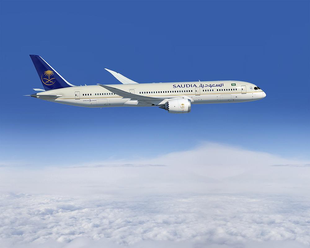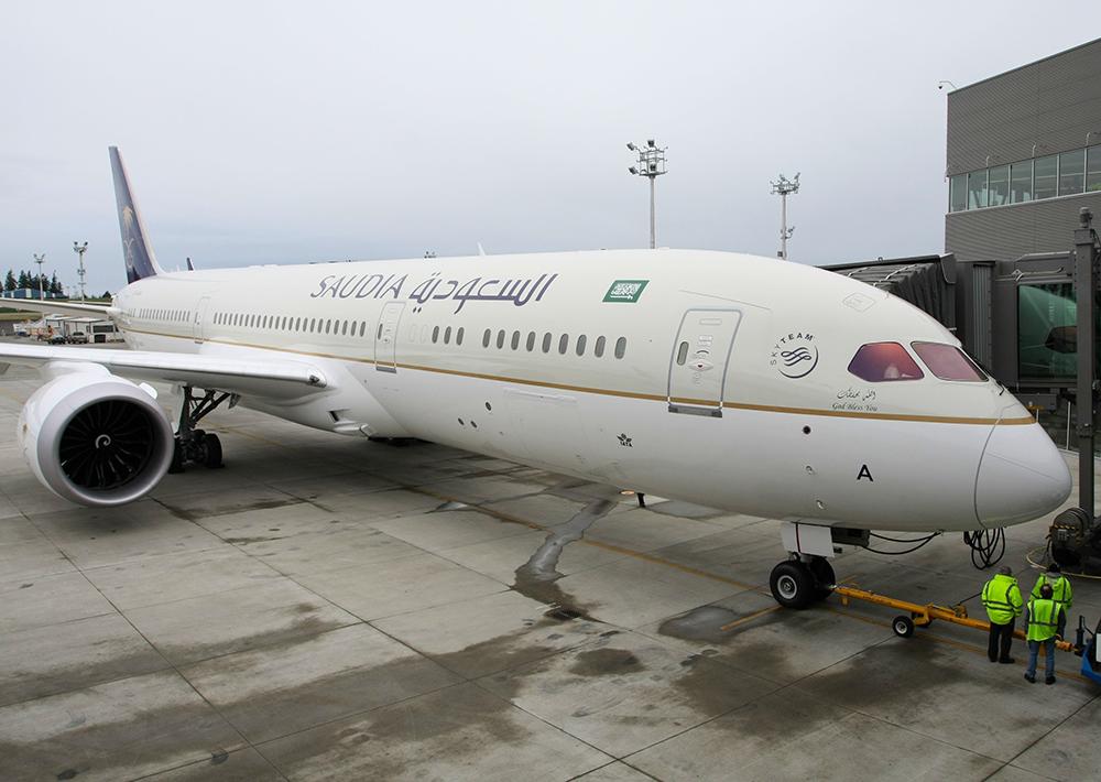 Saudi Arabia's national airline, Saudia, took delivery of two Boeing 787-9s and a 777-300ER. A third Dreamliner will be delivered to Saudia within the next week. The airline ordered eight 787-9s in 2010. Pictured: Saudia 787-9