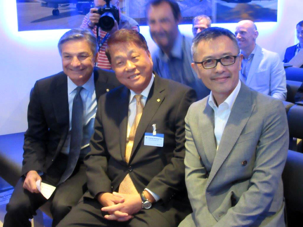 Boeing Commercial Airplanes president and CEO Ray Conner with China Airlines chairman Huang-Hsiang Sun and Taiwanese architect and designer Ray Chen. See photo gallery of China Airlines' Boeing 777-300ER.