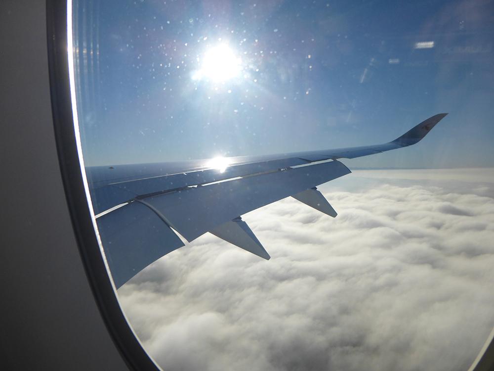 Qatar Airways A350 XWB wing on approach to Toulouse. ATW By Kurt Hofmann