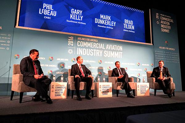 Southwest Airlines CEO Gary Kelly, Hawaiian Airlines CEO Mark Dunkerley and Alaska Airlines CEO Brad Tilden at the A4A Commercial Aviation Industry Summit.