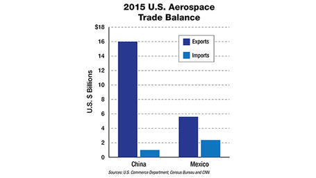 An import tax could imperil large U.S. aerospace surpluses with China and Mexico.