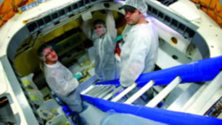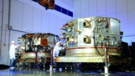 The initial two service modules for the Orbital Sciences Corp. Cygnus commercial cargo carrier, which is scheduled to fly to the International Space Station this year, are nearing completion at the company's factory in Dulles, Va.