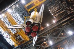 Processing the space shuttle for launch enables one to see it as much as art form as flight hardware. Sadly, scenes like this at the Kennedy Space Center will occur for only the next three years, as the shuttle program flies into history in 2010. Atlantis (left and above) first flew in 1985 and has...