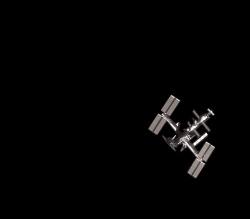 Astronomers at the Clay Center Observatory in Brookline, Mass., used a 0.64-meter Ritchey-Chretien telescope to capture this image of the International Space Station as it passed overhead at an altitude of 350 km. (217 mi.). The tail of the space shuttle Atlantis and its three main engines are...