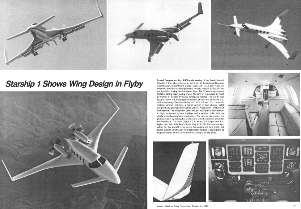 Scale Composites Inc. built this 85% scale version of the Beech Aircraft Starship 1 which showcased its flying capabilities at the NBAA show in Dallas, Tex.