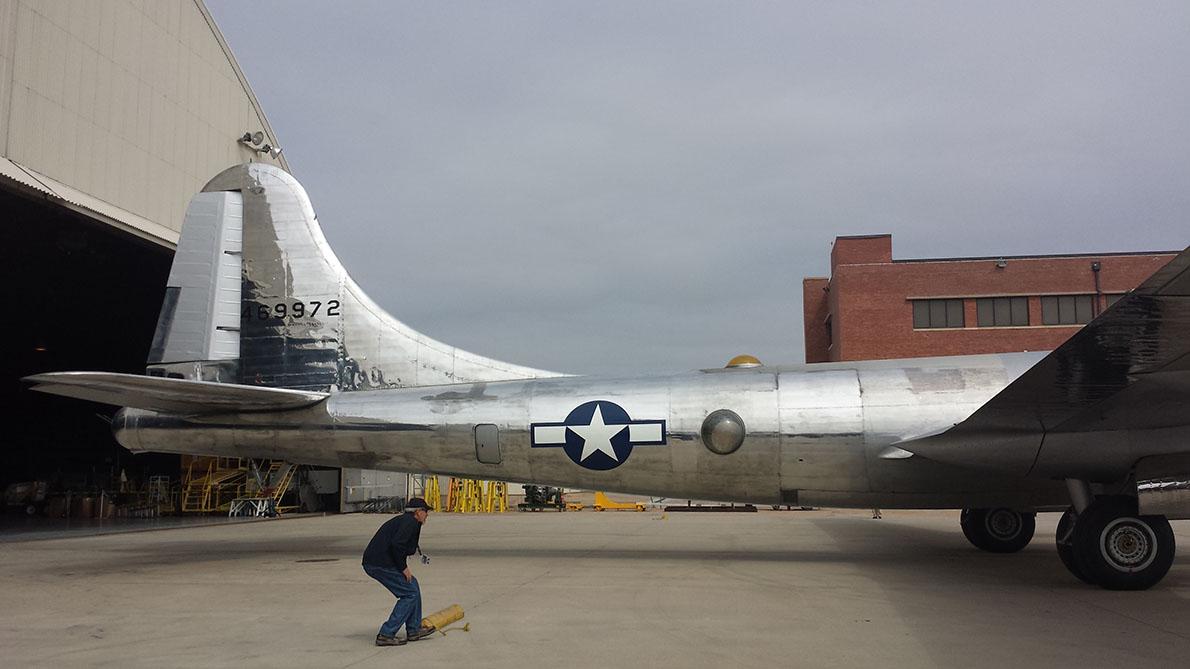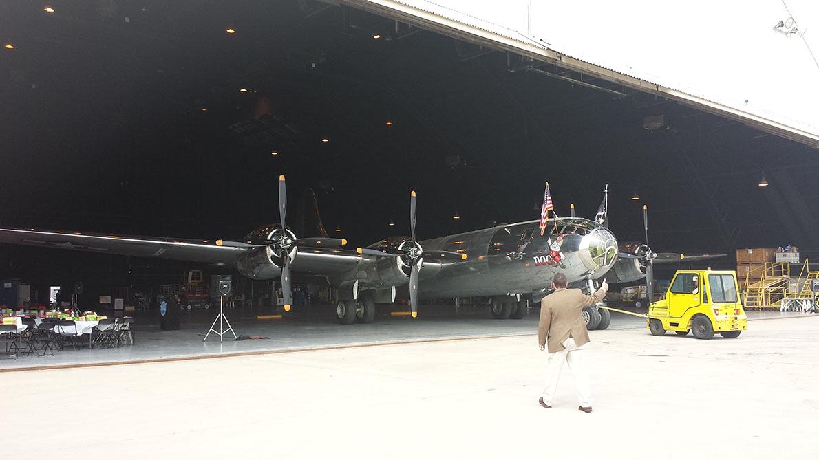 "Doc" B-29 Superfortress Tail Rolls out of Hangar