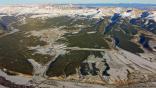 Photos provided by the KLXV airport staff showed the runway was basically clear, with only a few small areas of patchy snow. The staff report documented skid marks from the accident airplane on the runway and the airplane’s path beyond the runway. Although the skid marks were minimal and located near the runway end, they show that at that point the brakes were operating.
