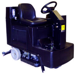 The NNS Champ 2929 ride-on scrubber has a 36-volt electrical system that delivers up to 30% more run time than a comparable 24-volt machine. The machine can lift 60 in. of water, runs on six batteries and features a single front-drive wheel that turns 90 degrees. The scrubber comes with two pad...