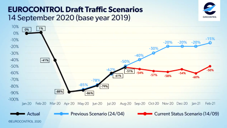 Eurocontrol has cut its traffic forecast, blaming the uncoordinated response to COVID-19 travel restrictions among European countries.