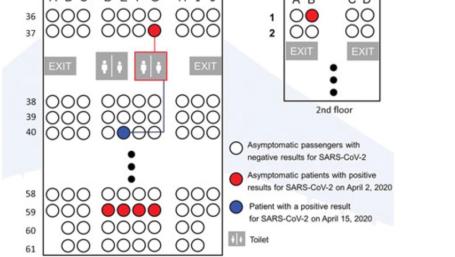 A study funded by the government of South Korea suggests that a passenger who is infected with the novel coronavirus that causes COVID-19 but shows no symptoms can infect other passengers on the same flight.