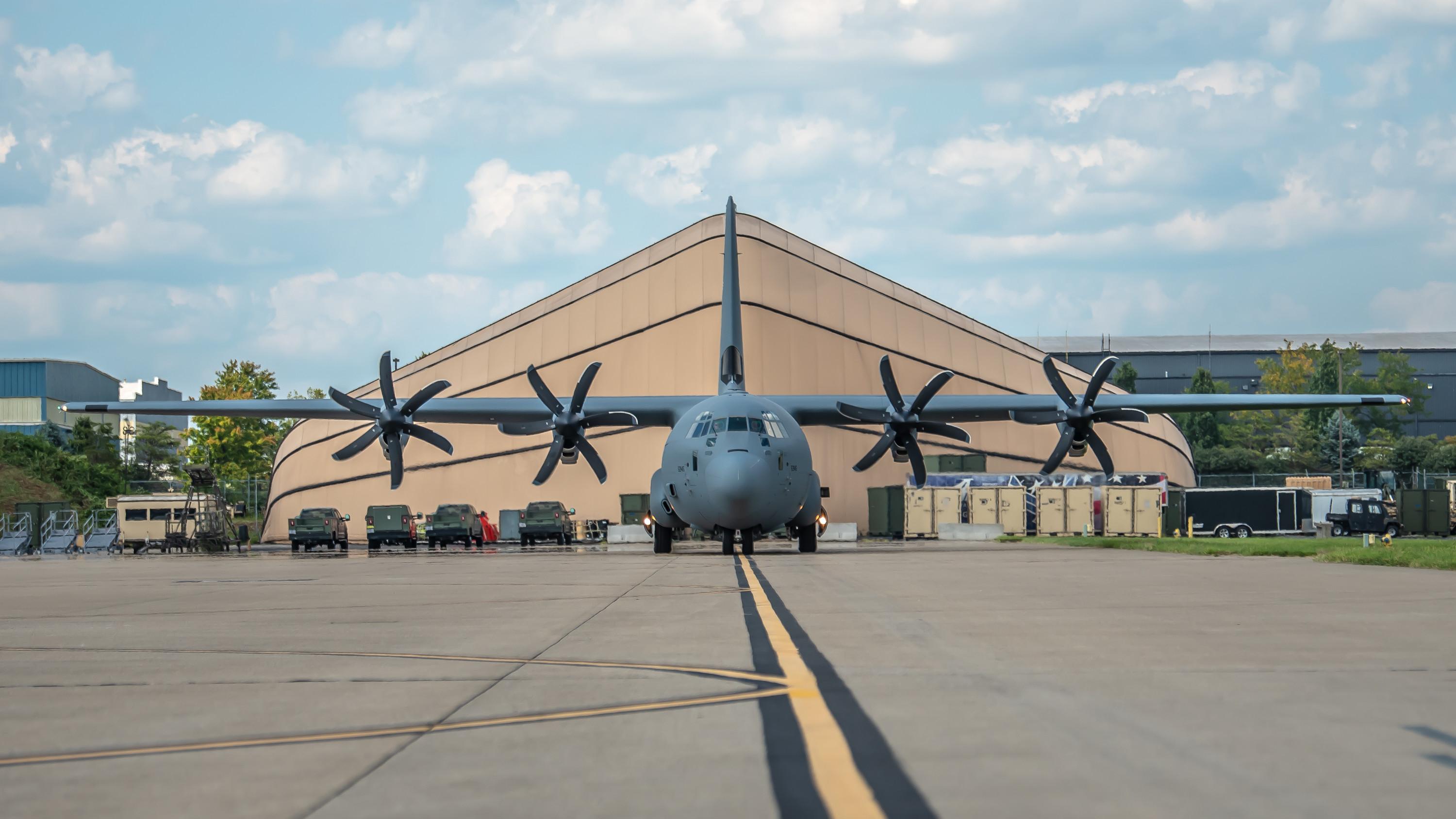 A C-130J arrives at an Air National Guard base in Louisville, Kentucky, in September 2022.
