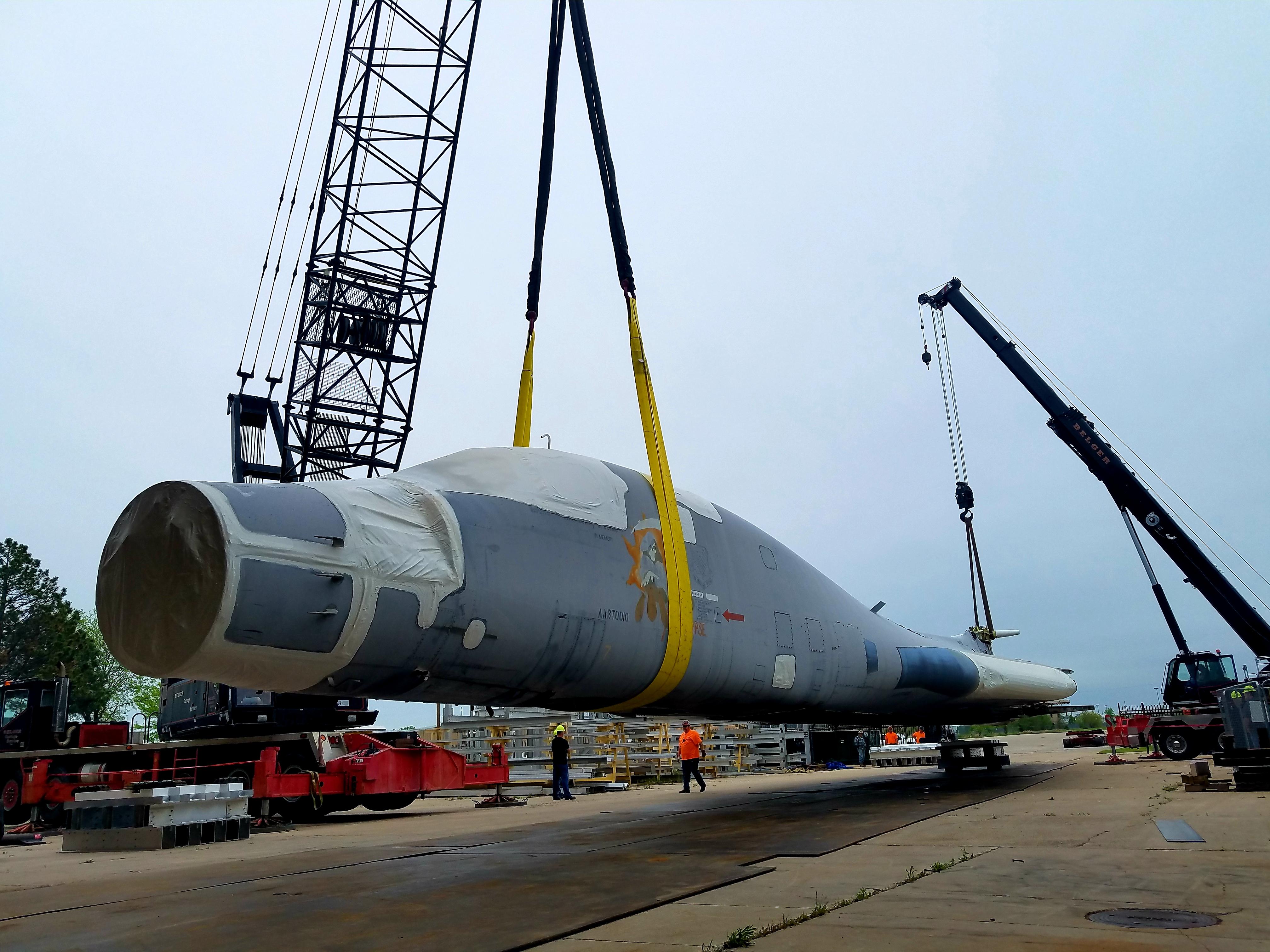 WICHITA—After arriving on four trucks from a U.S. Air Force Boneyard in Arizona, a retired B-1 Bomber was unloaded on May 4 here, where it will be disassembled, scanned and reassembled virtually under a six-year project with Wichita State University’s National Institute for Aviation Research (NIAR)...