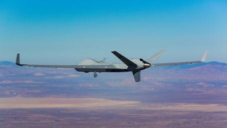 General Atomics has flown the first production representative MQ-9B SkyGuardian medium-altitude, long-endurance unmanned air system.