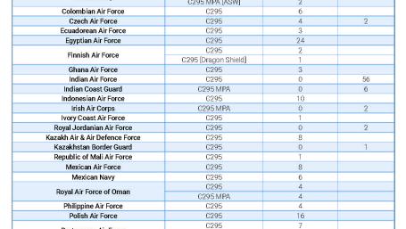 Worldwide Airbus C295 military fleets, excerpted from Aviation Week’s Fleet Discovery Database.