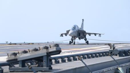 Tests were carried out by the naval version of the indigenous HAL Light Combat Aircraft Tejas (N-LCA) and a Mikoyan MiG-29K.