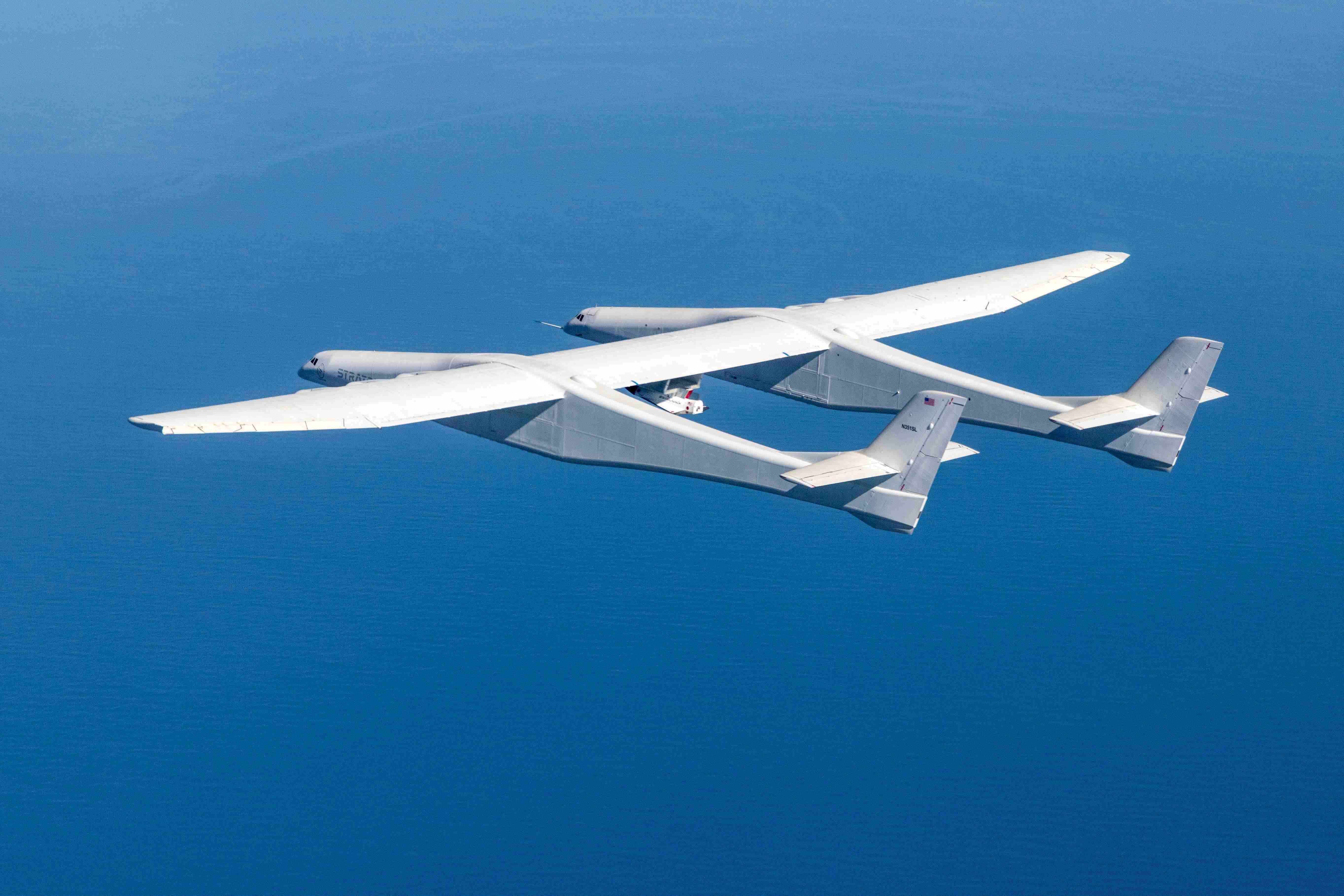 Stratolaunch flies for the first time over the Pacific as it enters Vandenberg Space Force Base’s Western Range off California’s central coast on April 1.
