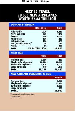 Growth in regional jets and better utilization rates of existing single-aisle transports have taken some of the pressure off aircraft order rates, but Boeing's 20-year outlook remains decidedly bullish for everything it makes. The company expects worldwide demand to bring 28,600 aircraft orders...